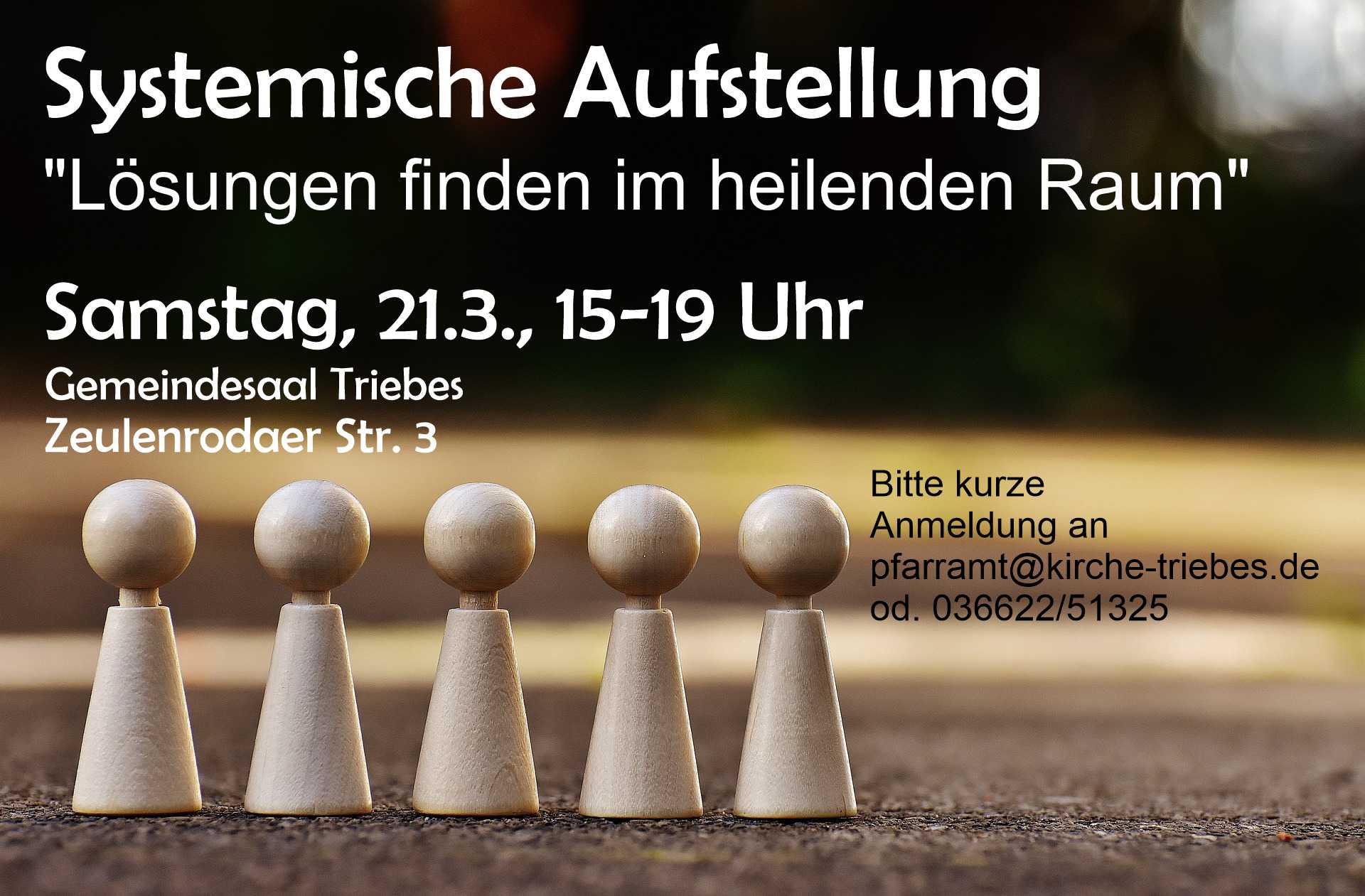 Jeder Mensch ist Teil eines Systems. Egal ob die Herkunftsfamilie im Blick ist oder aber auch die Menschen, mit denen wir arbeiten und leben: wir stehen damit im Kraftfeld, in das uns Gott hineingestellt hat. Die Aufstellung kann Probleme und Blockaden sichtbar machen. Lösungen kommen in den Blick. Ganz bewusst geschieht das im heilenden Raum, den Christus durch seinen Geist eröffnet. Er ist die Ressource für Kraft und Schritte in die Freiheit. An diesem Tag können Sie ein Problem aufstellen oder als Repräsentant daran teilnehmen.