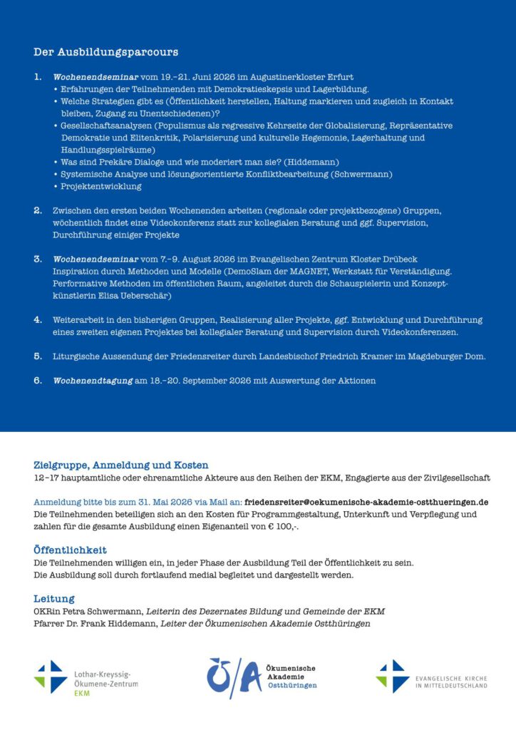 Anmeldung bitte bis zum 31. Mai 2026 via Mail an: friedensreiter@oekumenische-akademie-ostthueringen.de
